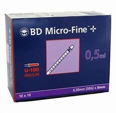 Strzykawki BD Micro-fine + U-100 30G, 0,3mm x 8mm , 0,5 ml, 100 sztuk, REF: 324825